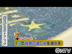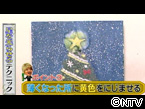 白い絵の具をたわしにつけて、網の上でこすります。 この時、絵の具を水で溶き過ぎないのがポイントです。 更に、ツリーの上の星を光らせたい場合は、 水で背景の濃い色を溶かします。 そしてティッシュで周りの水分を抜いて、 薄くなった所に黄色をにじませれば完成です。