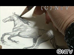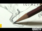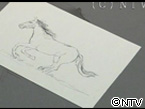 1.全体を下書き。動物の場合、主役は絵の具ではなく鉛筆。 影の部分をしっかり濃く、描き入れます。 絵の具での表現は難しいのですが、鉛筆の段階でなら、 消しゴムで修正することが出来ます。 2.そして彩色。使う色は一色だけです。水で薄めてさっと塗るだけ。 水分が多いと、鉛筆と絵の具がなじみやすく、濃淡によって自然なシルエットになります。 更に躍動感を付けたい場合はあまり絵の具を水で溶かずに足元を筆ではらえば、 より立体感も出ます。
