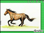 馬の走っている方向の文字(障害物)があるとうっとおしく、 馬の前に空間を作ると、より開放感が得られ、 よい構図になります。 また、年賀状などで凧を描くときも、 凧は上がってゆくものなので、 上の部分に配置すると、より飛んでいる感じが出ます。