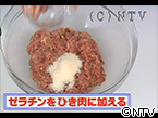 デザートのゼリーにも使われるプルプルのゼラチンは、 肌のみずみずしさを保つコラーゲンでできています。 そのゼラチンをひき肉に加えることで ジューシーさを失わずに済み、 肉汁を水々しいまま保ってくれるのです。 <分量> ハンバーグ400g に対して ゼラチン2g