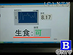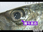 レーザーをあてることで鮮度が測れます。 実はこのレーザーで見ているのは、魚の目の濁り具合。 魚の目の水晶体は、死後少しずつ白く濁っていきます。 この性質を利用して、レーザーを目にあてることで 鮮度を割り出しているのです。