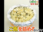 内側の容器にアルミホイルを敷き、ご飯を詰めたら、 カバーを被せフタの部分を押し付けて型をとります。 それを、オーブントースターで焼けば、 焼きおにぎりの器が完成です。