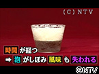 【作り方】 ① お湯をボールに入れ、粉ゼラチンを加える ② その中に、お湯の8分の1の量のお醤油を入れ軽く混ぜます。 ③ ②のボールを氷と水が入ったボールにつけて冷やしながら 1~2分ほど素早くかき混ぜたら完成。 この時、網じゃくしをを使います。 泡立て器よりも細かくフンワリとした泡ができるのです。 泡しょうゆは時間が経つと泡がしぼみ、 風味も失われるので、食べる分だけ作るのがポイントです。