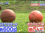 ボウリングの球とほぼ同じ大きさのバスケットボール それを巨大パチンコで飛ばした場合、 どちらが遠くへ飛んだでしょうか?