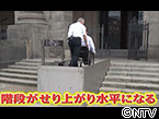 ボタン一つで車椅子を乗せたまま階段が せり上がり段差がなくなって水平になるのです。