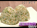 【作り方】 ① ごはんに天かす・天つゆ・青のりを加えておにぎりにする