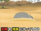 アルマジロは20種類程いるのですが、 丸くなれるのは2種類だけです。 あとの種類は、地面にくぼみを堀ったりして、 お腹を地面に守ってもらうのです。