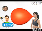 まず、背筋を伸ばしてまっすぐに立ちます。 親指でおへその横、左右3cmのところを 押さえながら、息を深く吸い込んでください。 吸い込んだ息を「フッフッ」と分けて吐きながら、 5秒間、お腹で親指を押し返します。 ここでイメージ! 風船をフーッと膨らませるように、 強く息を吐き出すイメージで行いましょう。 1日3回が目安です。 ※無理をせず自分のペースで行ってください。