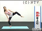 1、まず肩幅よりも広めに足を開きます。 2、4秒かけて腰を沈め、 ゆっくりと片足をあげ、床に降ろし四股をふみます。 この時、膝とつま先が同じ方向になるように、 注意してください。 違う方向になると膝を痛める原因になります。