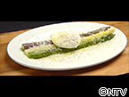 【作り方】 ① グリーンアスパラを炒め、 ホワイトアスパラガスは茹でる ※紫アスパラガスは生のまま! ② 皿に3色並べ、塩、ポーチドエッグ、 オリーブオイル、チーズ、黒胡椒の順でかける