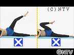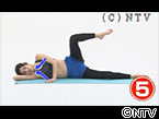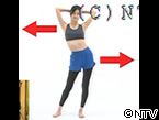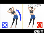 ① まず、足を肩幅に開き、手は頭の後ろで組みます。