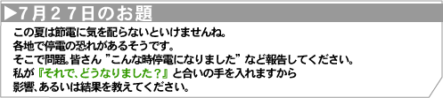 | ZZZ さん 年齢:31〜40才 住所:大阪府 一家団欒中に停電になりました。 どうなりました? 影響ありませんでした。電気を止められてますから。 |