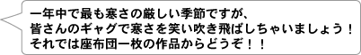 | 一応、旬のネタということで座布団1枚あげよう |