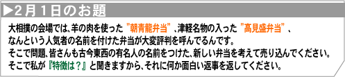 | 11 さん 三遊亭圓楽弁当いかがですかぁ〜? 特徴は? 新香(進行)が旨い(上手い)んです。 |