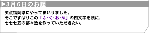 さん 「ふ」 冬が終わって 「く」 来る春向かえ 「お」 お供に来るぞ 「か」 花粉症 |