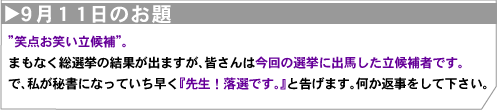 | みかん℃ さん 先生!落選です。 私の名前が「憂鬱 薔薇男」だから誰も投票用紙に書こうとしなかったのかな…。 |