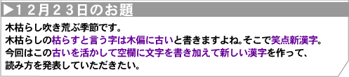 | ご〜よん さん (木久扇さんは問題の最後に、こう言おうとしたのでは?) 「!」が古いと書いて、「あっとおどろく タメゴロウ!」 |