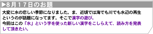 | 飛影 さん 美しい水と書いて、ミズコンテスト。 |