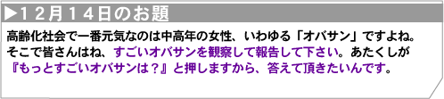 | おもち さん すごいオバサンは、男勝り。 「もっとすごいオバサンは?」 12時過ぎると、ヒゲが生えてくる。 |