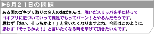 | マインド・ノート さん 「もし、お子様が誤って家のカギを飲み込んだらどうしますか?」と尋ねたら、「仕方ないから、ドアのガラスを割って中に入るわ」と答えたとき。 |