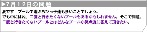 | ご〜よん さん 二度と行きたくないプールとは水の中に、 お酢や痰の入っているプール。 「翔んでお酢・痰プール♪」 |