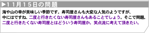 | 11 さん 二度と行きたくない寿司屋。 安いネタを注文すると、聞こえないフリをする寿司屋。 |