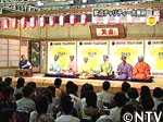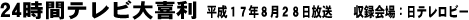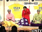 そこで24時間テレビ100歳万歳。今回皆さんは、100歳以上のお婆さんになってもらいました。私が、『お長生きですね。』といいますので、みなさん返事をしてください。 |