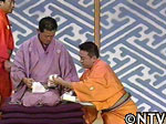 (歌丸の顔に一枚のせる。) |