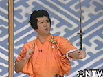 たすきしてカツラ被って、そして長ドスとくれば丁度国定忠治。「赤城の山も今宵限り。」名台詞の季節でございますよ。そこで問題は、皆さんこの文句の「今宵限り」これを活かして芝居っ気たっぷりに演じてください。で、私が『親分!』と合いの手を入れるのでさらに何か言っていただきたい。 |