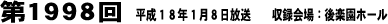 大杉 君枝 松本 志のぶ 西尾 由佳理 杉上 佐智枝 阿部 哲子 藤井 恒久 司会:三遊亭楽太郎・三遊亭小遊三 座布団運び:林家木久蔵・林家たい平