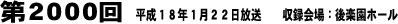 皆様のお陰で今回で2000回を迎えました。 そこで”笑点二つのセン”という遊びをやってみたいと思います。皆さんまず一言ヒントを言ってください。で、センが語尾につく二つの言葉を並べて下さい。