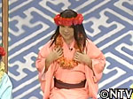 今フラダンスが静かなブームなんだそうです。今回皆さんはフラダンサーになっていただきます。で、ハワイアンを口ずさみながら楽しそうに踊ってもらいます。で、私も仲間のフラダンサーになって一緒に踊りながら『楽しいわね。』って言いますのでさらに何か言って下さい。