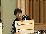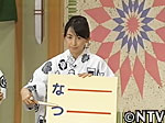 【1問目】 アナウンサーの皆さんも夏らしく浴衣で勢ぞろいして下さいました。今回皆さん、「な、つ」というパターンを手に持っていますが、まず短くヒントを言って下さい。 そして私が『何ですか?』と聞きますので、「な」と「つ」が付く言葉を答えて下さい。