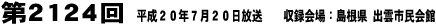 おなじみ「笑点お笑い窃盗団・島根編」。皆さんと私はね、全国を股に掛けた間抜けな窃盗団。皆さんは子分になって島根を中心に山陰地方の名物名産を盗んできたと報告して下さい。あたくしが親分になって『でかした!』と褒めますので返事を返して頂きたい。 |
