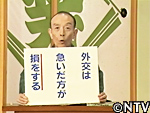 【1問目】 「外交は 急いだ方が 損をする」。政界のご意見番、中曽根元首相が言った言葉ですが、人間どこで損をするか分かりません。そこでですね、この「損をする」を活かした五七五の川柳をこしらえていただきたいんです。