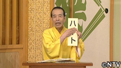 笑点・音引き隠しと参りたいと思います。例えばハートの「ー」を隠しますとハトになります。このように「ー」があるとないとでは全く意味が違う言葉になりますよね。そこで皆さん、真ん中に「ー」を含んだ言葉を書いて二つの言葉を関連付けて発表して頂きたい。