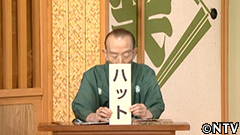 大好評・笑点一文字隠し。今回は小さな「ツ」でいきたいと思います。例えば、「ハット」は帽子「ハト」は帽子から出てくる。こういう具合に一つ皆さんにやって頂きたい。