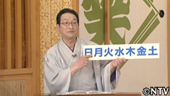 皆さんお忙しい落語家さんですから多忙な一週間を過ごしていると思います。そこで今回は「日月火水木金土」、このうち二つを使って皆さんが過ごした一週間の体験をショートストーリーにして発表してください。