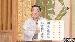 先程の演芸コーナーのぴろきさんのように、人生は明るく陽気にいきたいものですね。そこでこの「人生は明るく陽気にいきましょう」にあう、七・七、この言葉を考えて発表してください。