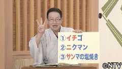 「笑点・1、2、3言葉遊び」。例えば、「私が好きな食べ物です。イチゴ、ニクマン、サンマの塩焼き。」こういう風に1、2、3と指を立てながら、呼び方は「ひー、ふー、みー」でも「ワン、ツー、スリー」でも構いませんから、数字で遊んでください。