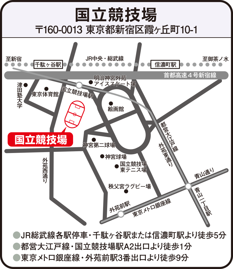 | 東京 | 国立競技場 味の素フィールド西が丘 駒沢陸上競技場 |