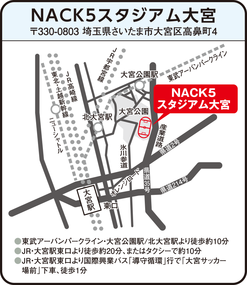 | 埼玉 | NACK5スタジアム大宮 熊谷スポーツ文化公園陸上競技場 |