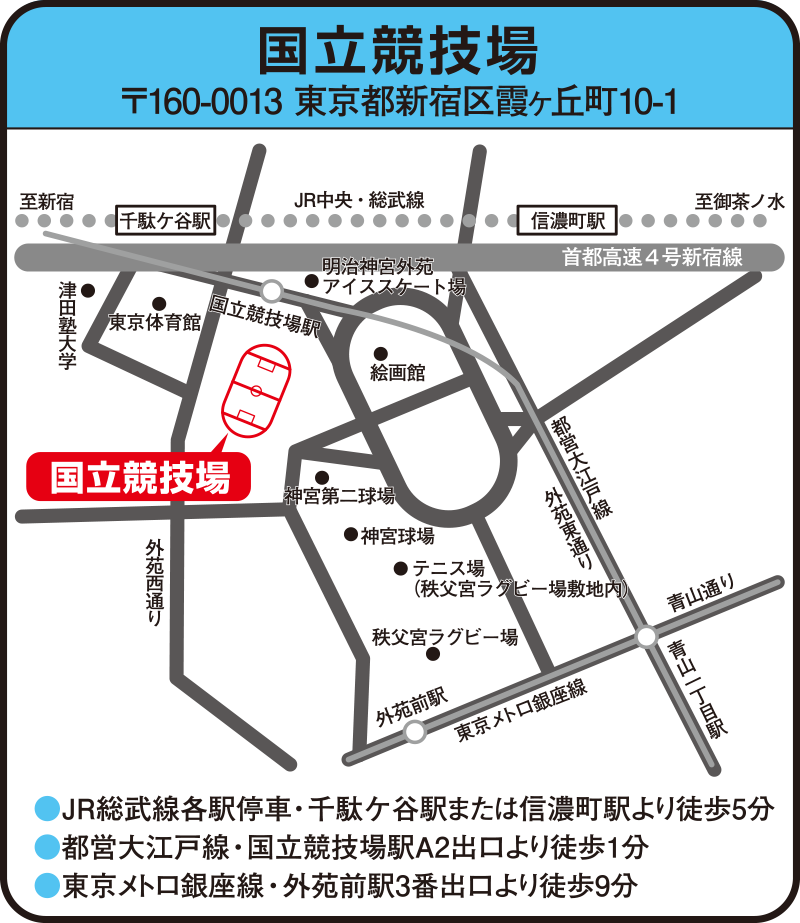 各会場には専用駐車場を設けておりませんので、公共の交通機関をご利用ください。各会場の地図をクリックすると拡大します。