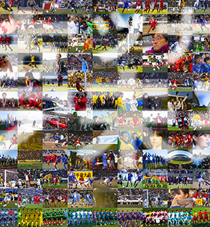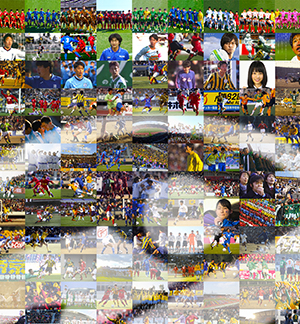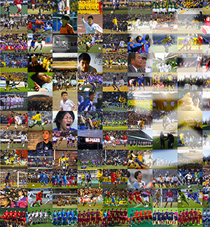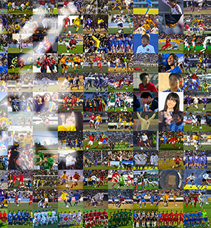 今大会の地区大会ポスターは選手権の歴史を彩る名選手・名場面の画像で作成しました。 選手権開始当初7連覇を達成した御影師範から、前回大会優勝の静岡学園まで、約800枚の画像から出来ています。