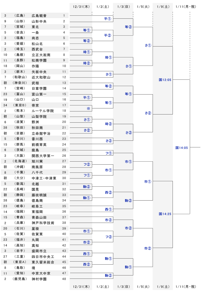 ※オープニングゲーム 12月30日(水)国立競技場13:10 試合開始時刻 (1)12:05 (2)14:10