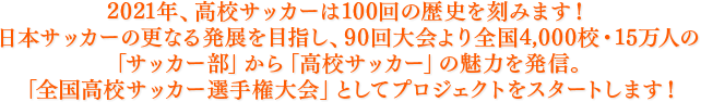 これから迎える100回大会を目指し、そして次の世紀につながるよう、継続的に活動していきます。そして、その魅力が国内のみならず「高校サッカーから世界へ」つながってゆくことも願っています。
