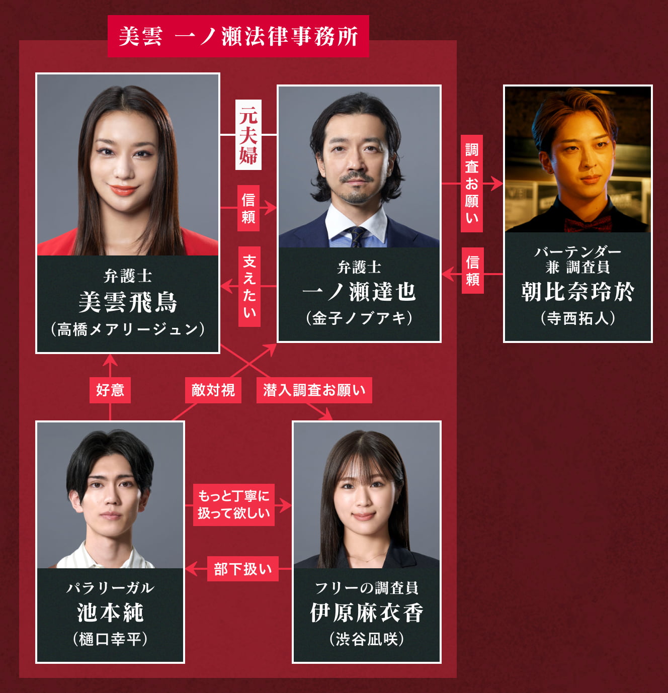 美雲法律事務所のパラリーガル。豊富なIT系知識でちょっとしたヒントから情報を得ることができる。物事に入れ込み過ぎないイマドキな性格だが、依頼人に感情移入しやすい一面も。大学卒業時からずっと司法試験の合格を目指しているが本番に弱く、知識はあるのに合格できない。密かに美雲に想いを寄せていく…。