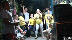 さらに、マニラの住宅街を歩いていると、路上でカラオケをする酔っ払い集団を発見!
