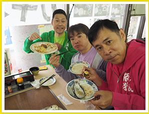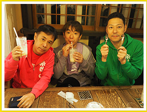 よゐこの濱口と共に昼食のために許可取りをする東野。