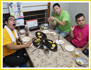 宿泊場所へ向かった一行であったが、いつもとは違う宿に感激する。